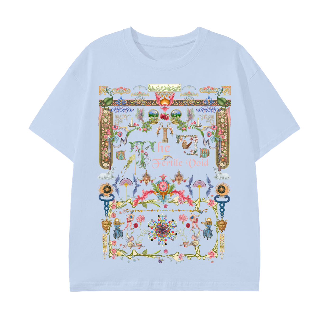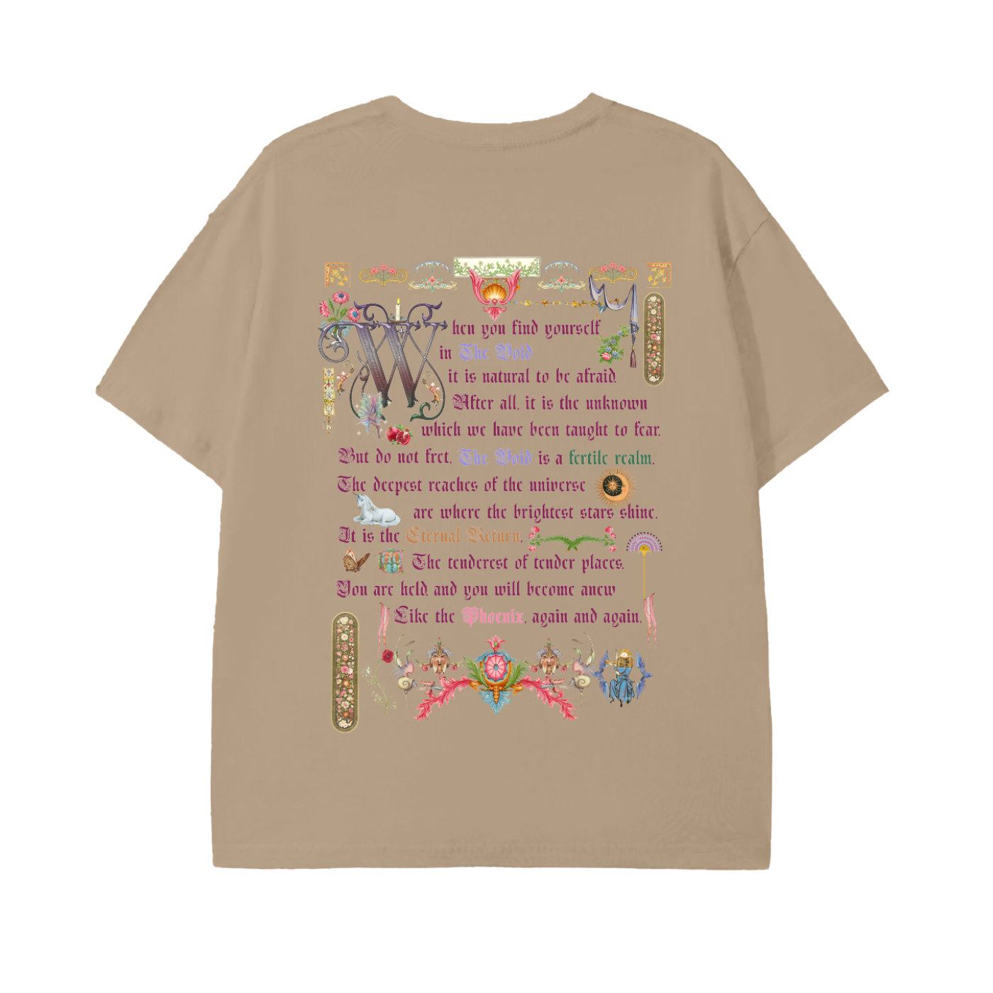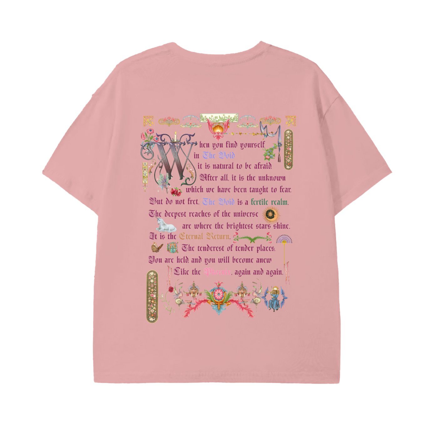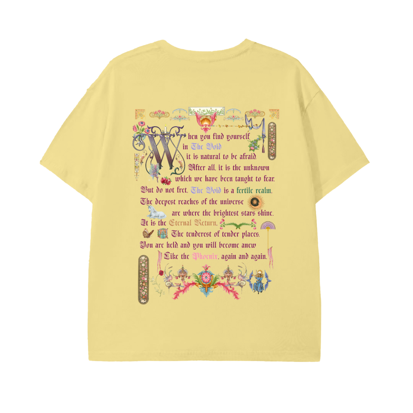Featured in the Illuminated Magazine, this design hearkens back to ancient illuminated manuscripts from The Middle Ages, with a fae, whimsical flair. On garments both the front and back are printed.